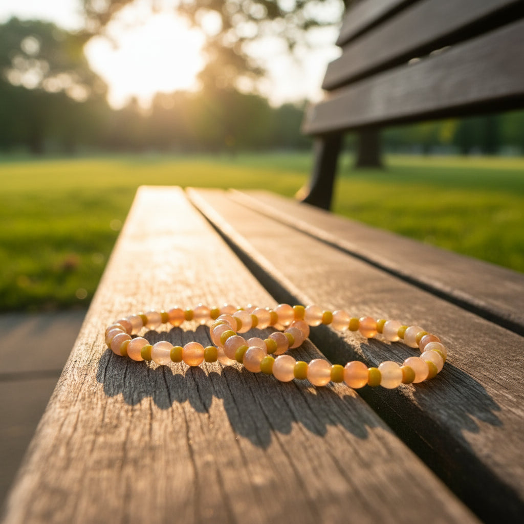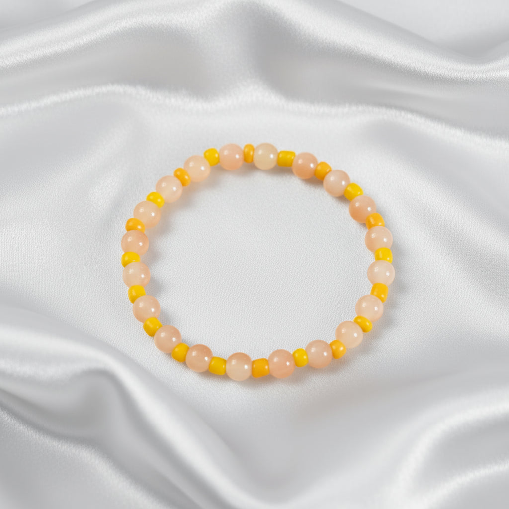 The Golden Orchard bracelet combines delicate glass and seed beads in warm milky orange and vibrant orange tones, strung on a comfortable elastic band. Its lightweight design makes it easy to wear all day, adding a cheerful pop of color to any outfit while offering a gentle, flexible fit that supports your everyday style.