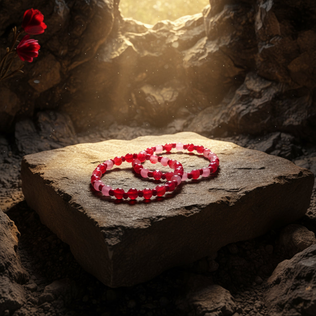 Ruby Mist is an elastic bracelet crafted with milky red glass beads and vibrant red seed beads. Its stretchable design offers a comfortable fit for all-day wear, bringing a soft yet striking touch of color to your wrist. Perfect for adding a gentle boost of warmth and style to any outfit.