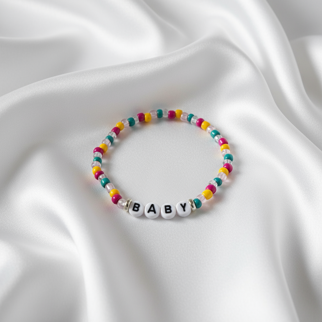 Add a splash of color and charm with the Saja Boys: Baby elastic bracelet! Crafted with vibrant seed beads in teal, translucent pink, yellow, hot pink, and clear hues, this playful accessory sparkles with silver bead accents. Perfect for fans of the Saja Boys, it’s a fun way to show your style and brighten any outfit with a cheerful pop. Stretchy and easy to wear, it fits comfortably for everyday adventures and dancing through your day.