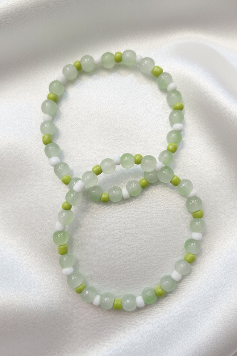 Add a splash of spring to your wrist with the playful "Spring Meadow" bracelet. Featuring elastic comfort and a lively mix of milky green glass beads paired with cheerful white and yellow-green seed beads, this bracelet captures the fresh, bright spirit of a blooming meadow. Perfect for layering or wearing solo to brighten any outfit with a subtle, nature-inspired charm.
