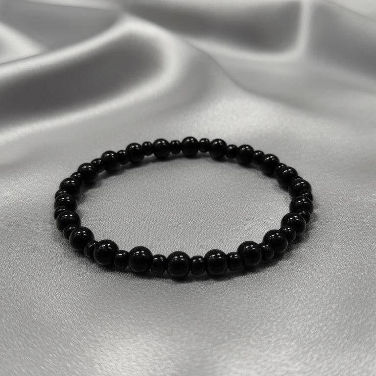 The Tairn bracelet combines delicate black glass and seed beads on a comfortable elastic band, making it easy to wear all day. Its simple yet elegant design adds a subtle touch of style to any outfit, while the stretch fit ensures a perfect fit for your wrist. Ideal for everyday wear or layering with other accessories, this bracelet brings understated charm and versatility to your jewelry collection.